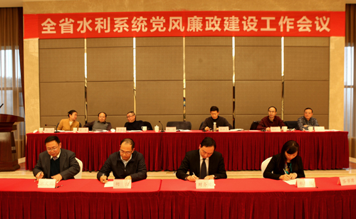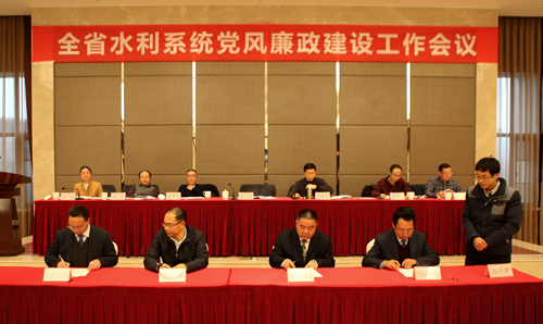 会议期间,全省各市州水务局主要负责人就《党风廉政建设承诺书》进行践诺述责,并与省水利厅党组签订了2017年党风廉政建设承诺书。厅机关各处室和厅直各单位与厅党组签订了《党风廉政建设责任书》。