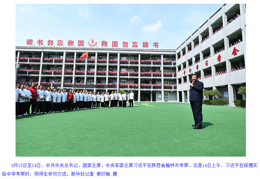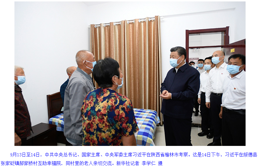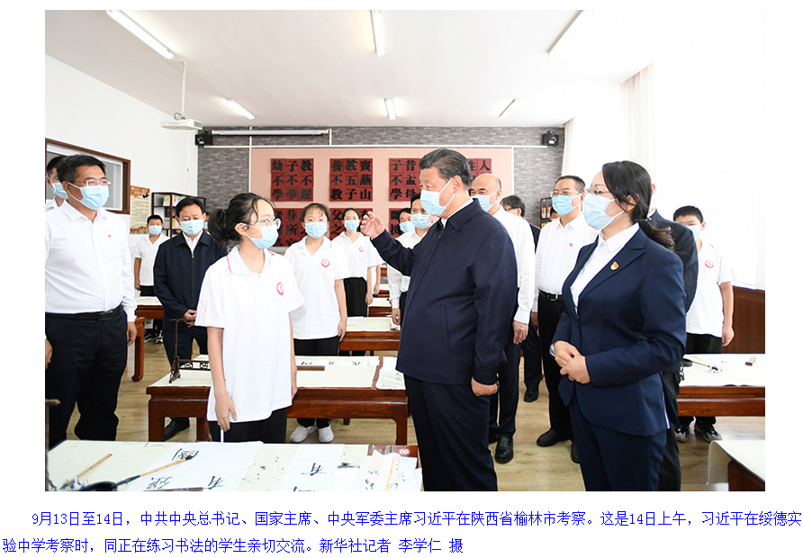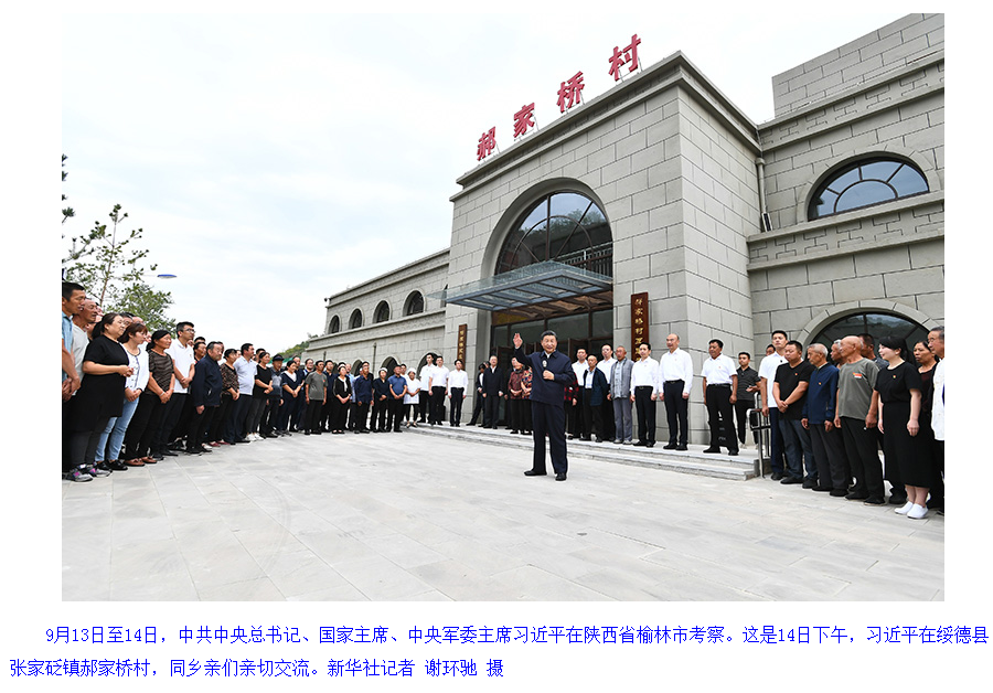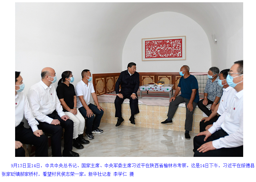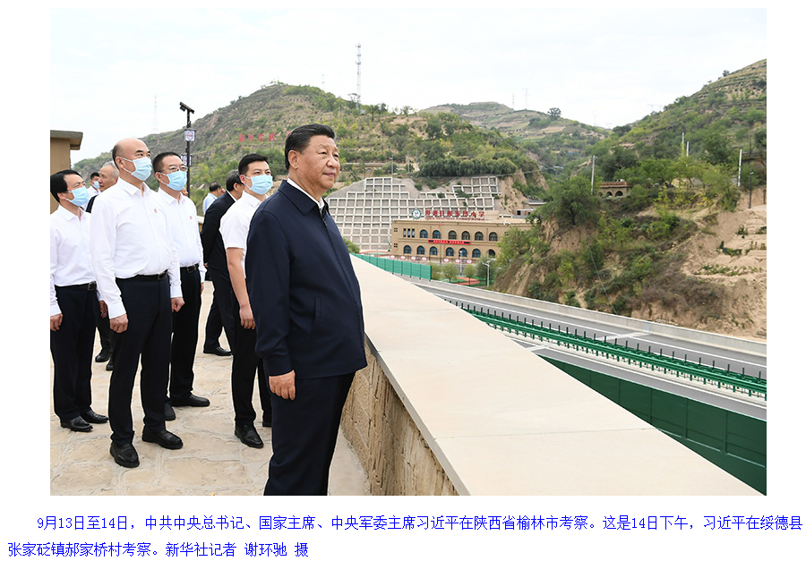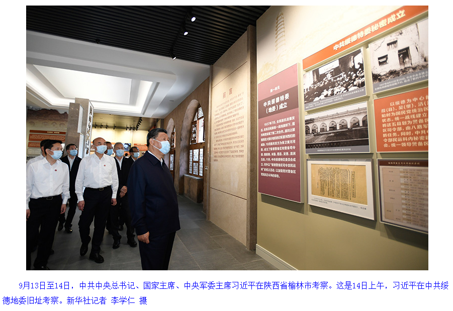 9月13日至14日,习近平在陕西省委书记刘国中、省长赵一德陪同下,深入企业、农村、学校、革命旧址等进行调研。
