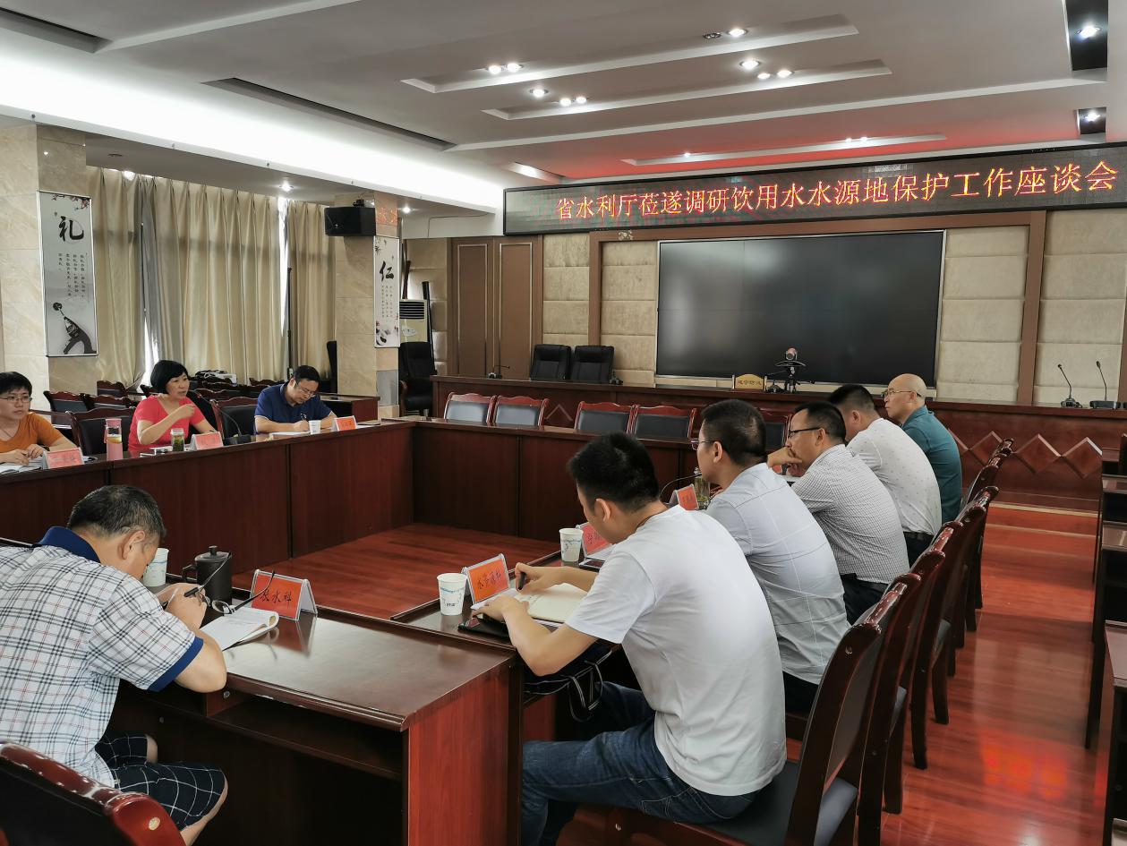 2019年7月25日,省水利厅总规划师权燕带队调研我市饮用水水源地保护工作情况。市水利局党组书记、局长罗腾亮陪同调研。 调研组一行前往遂宁市南北堰饮用水水源地实地查看了饮用水水源保护区规范化建设和取水口运行管理情况,深入明星自来水公司二水厂了解水厂制水工艺、水质检测及供水联合调度,现场听取市水利局和四川明星电力股份有限公司关于南北堰饮用水水源地保护工作和取水口集中北移工程项目推进总体情况。 在随后召开的座谈会上,市水利局汇报了近年来我市饮用水水源地保护工作开展情况,调研组一行充分肯定了我市在饮用水水源地保护工作中取得的成绩。权燕总规划师指出,饮用水水源保护事关人民群众身体健康,各级各部门要将饮用水水源保护工作作为头等大事来抓,水利部门要切实履职尽责,在积极做好本职工作的同时,配合生态环境等其他部门共同做好饮水安全保障工作,让老百姓能真正喝上安全卫生合格的自来水。此外,权燕总规划师对下半年水资源管理重点工作进行了安排部署。