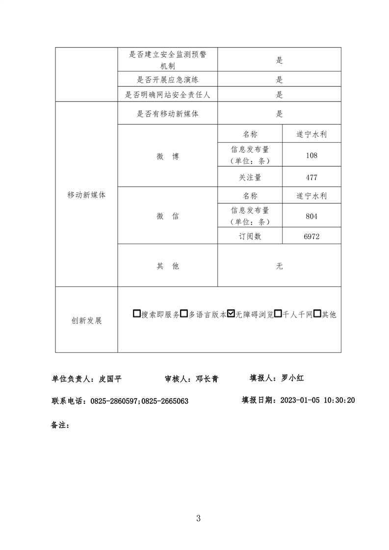 遂宁市水利局政府网站工作年度报表(2022年)
