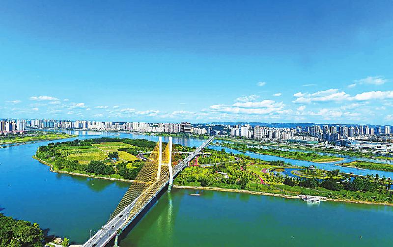 近年来,南充市高坪区通过河湖治理、河长制守护,使辖区江河水质得到明显改善。图为俯瞰的嘉陵江。周汉兵摄(视觉四川)