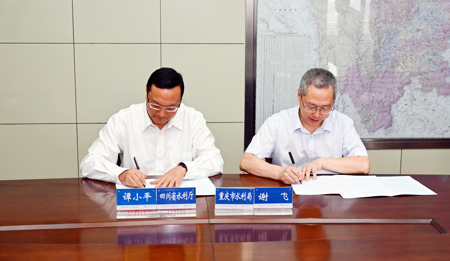 5月21日,四川省水利厅与重庆市水利局举行《成渝地区双城经济圈水旱灾害防御信息共享和通报制度备忘录》签约仪式。受两省市水利部门主要领导委托,四川省水利厅副厅长谭小平和重庆市水利局副局长谢飞代表合作双方签约。