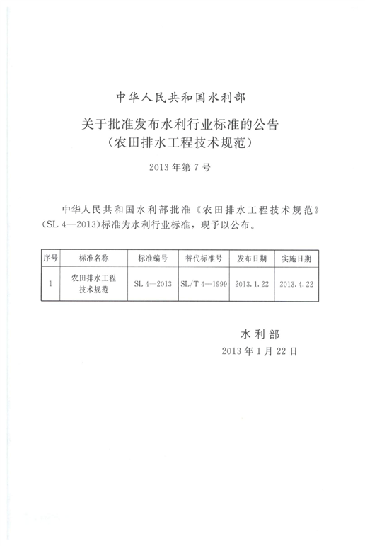 农田排水工程技术规范(SL 4-2013)